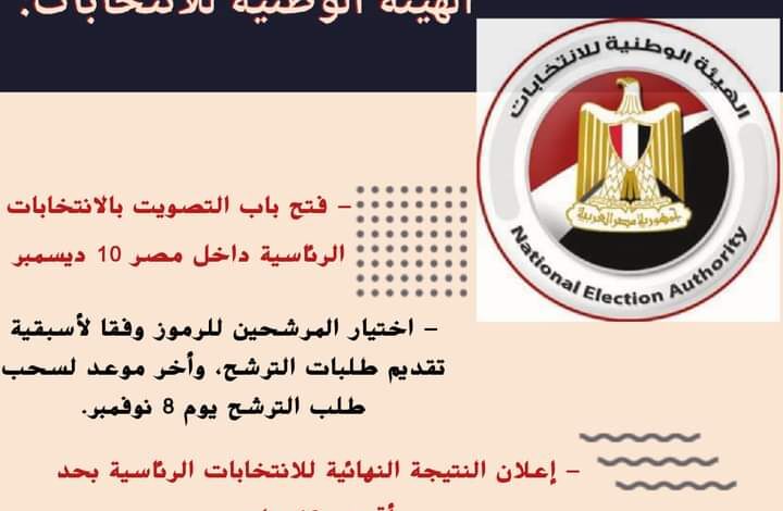 🔸 إعلان القائمة النهائية لأسماء المرشحين ورموزهم ونشرها في الجريدة الرسمية وصحيفتي الأخبار والجمهورية، على أن تبدأ الحملات الانتخابية اعتبارا من يوم 9 نوفمبر.