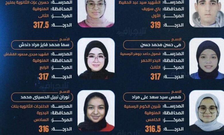 تعرف علي اسماء أوائل الثانوية العامة 2025 شعبة علمي علوم
