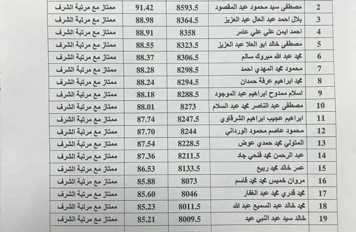 بيان بأسماء العشرين الأوائل الحاصلين على مرتبة الشرف دفعة 2022/2021م، بكلية الصيدلة بنين بجامعة الأزهر بأسيوط.