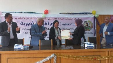 بحضور عائشة عبد الهادي نقابة العاملين بالبناء والأخشاب تنظم احتفالية بيوم المرأة المصرية